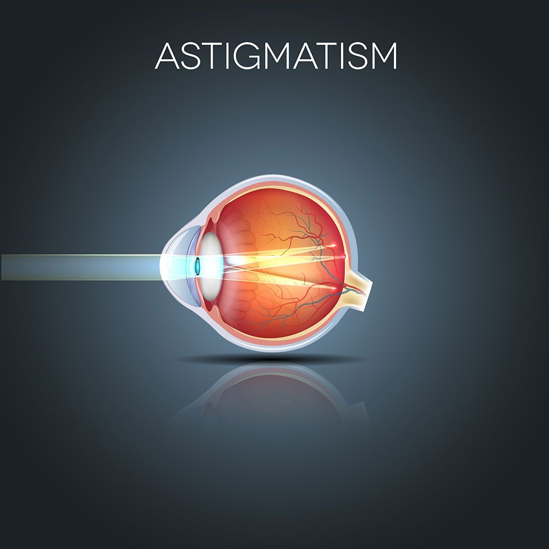 Imagine the cornea shaped as a rugby ball when it should be the shape of a football. It results in blurred vision at all distances and can be corrected with glasses, contact lenses or laser vision surgery.
